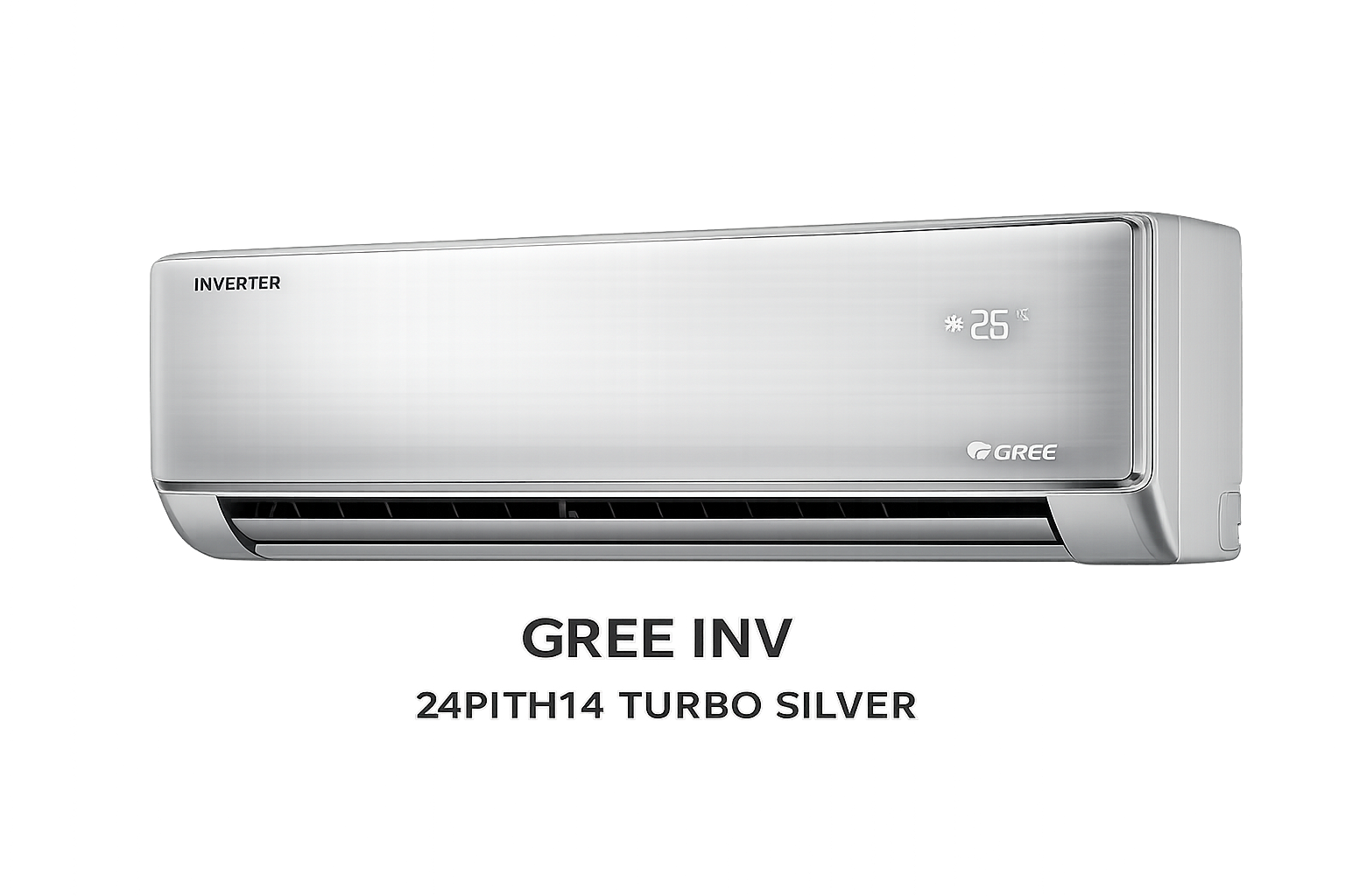 GREE Inverter 24PITH14 Turbo Silver – Fast, energy-efficient cooling with clean air filtration and sleek design for large rooms.